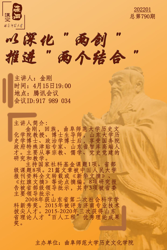 洙泗讲堂预告| 金刚:以深化"两创"推进"两个结合"