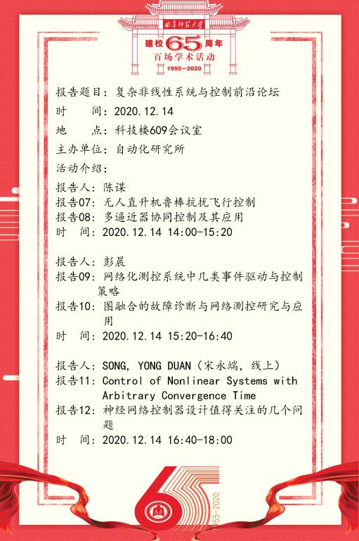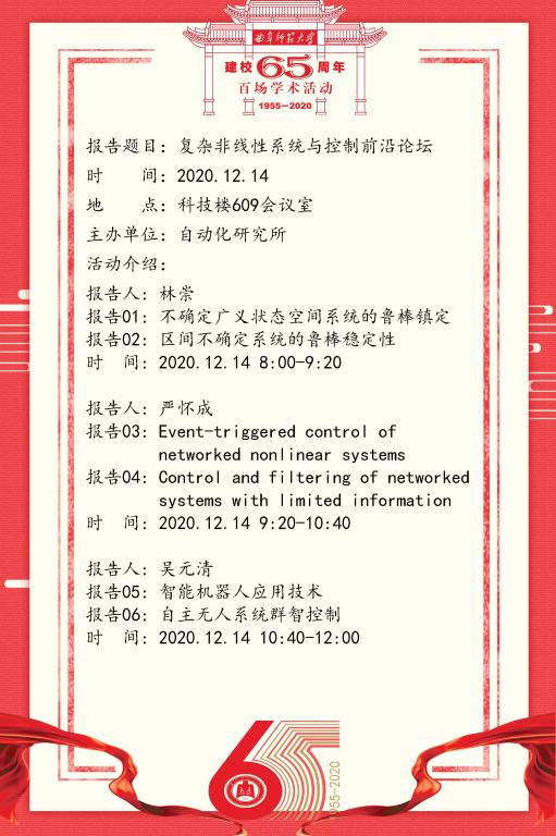 建校65周年校庆百场学术活动-复杂非线性系统与控制前沿论坛