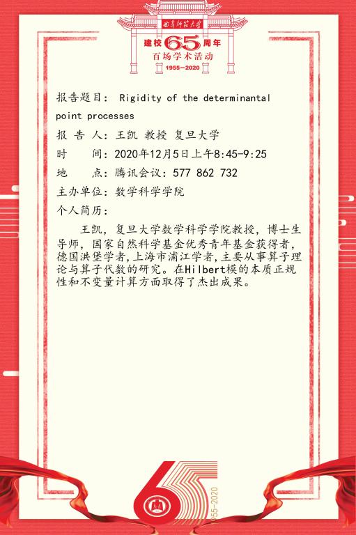 建校65周年校庆百场学术活动--复旦大学王凯教授