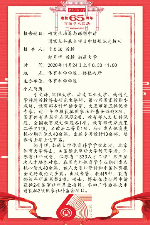 建校65周年百场学术活动-于文谦、邹月辉教授