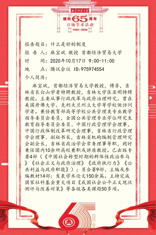 建校65周年百场学术活动-首都经济贸易大学麻宝斌教授