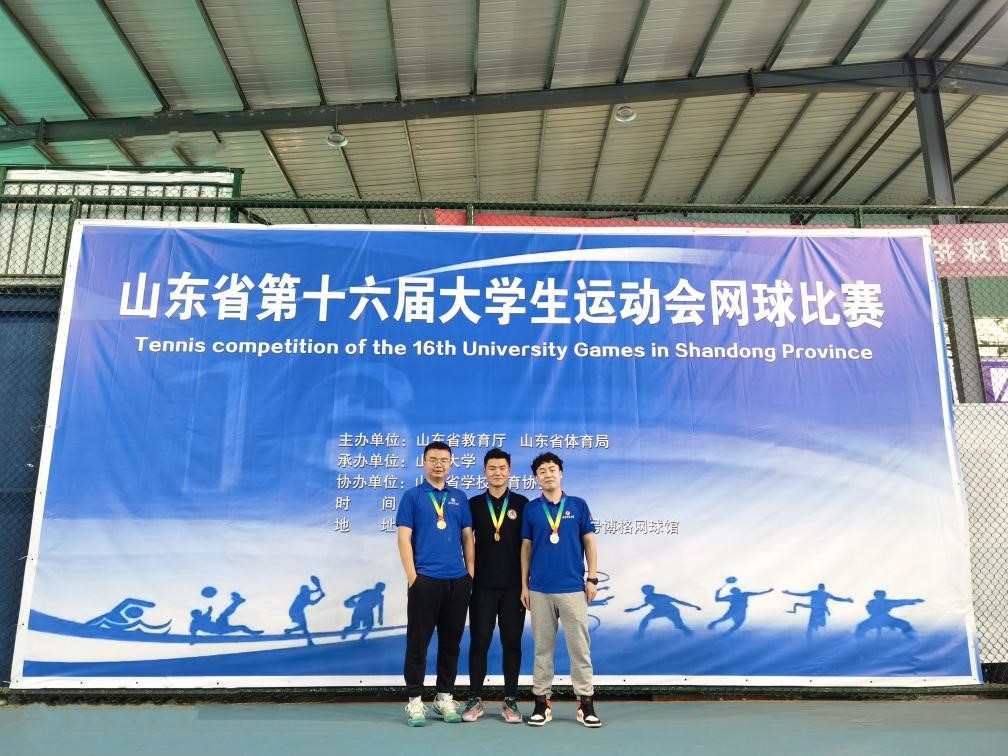 本次比赛我校体育科学学院2020级研究生常祥振、潘文博,2021级研究生王雷参赛。三位同学在比赛中顽强拼搏,奋力争取,最终王雷同学荣获男子丙组单打第一名;王雷,常祥振同学荣获男子丙组双打第一名、男子丙组团体第一名以及团体总分第三名,最终取得六枚金牌的优异成绩,是我校参加山东省大学生运动会网球比赛以来所取得的最佳成绩。