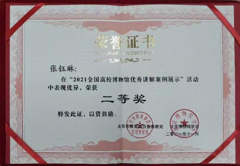 本届比赛共有来自64所高校博物馆的63位讲解员参加,采取网络评审方式,依托央视频等平台进行高校博物馆讲解案例的展示和评选。米兰网教师博物馆选送的《观器论道——成为谦谦君子》从众多参赛作品中脱颖而出,荣获大赛二等奖、“最佳人气奖”、优秀视频制作奖三个奖项。