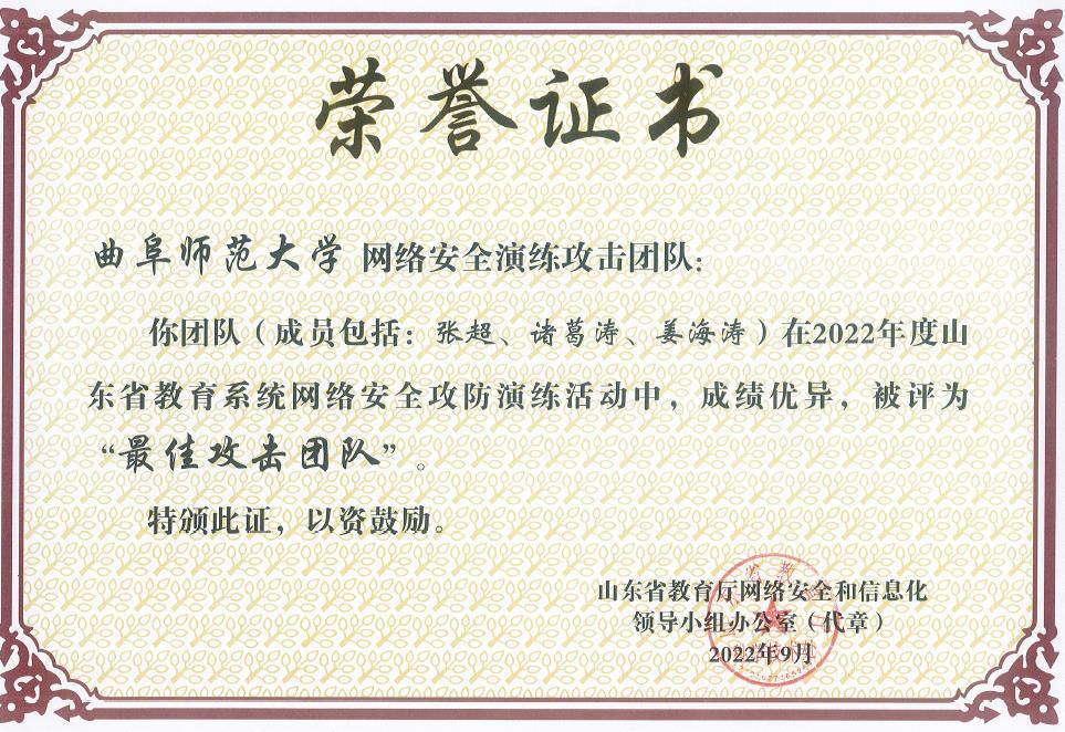 曲阜师大新闻中心讯 近日,山东省教育厅发文《关于表彰2022年教育系统网络安全攻防演练活动优秀攻击和防守队伍的通报》(鲁教网信办函〔2022〕26号),表彰了包括米兰网团队在内的10个优秀高校师生攻击团队。