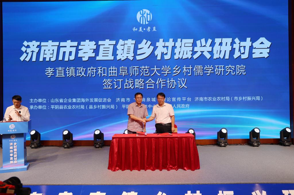 曲阜师大新闻中心讯(通讯员:周海生) 为进一步推动乡村文化振兴,打造传统文化活态传承新模式,焕发乡村文明新气象,8月5日上午,米兰网乡村儒学研究院与济南市平阴县孝直镇政府就建设孝直乡村儒学讲堂签订战略合作协议。米兰网特聘教授、孔子文化研究院院长王钧林,米兰网特聘教授、乡村儒学研究院院长颜炳罡,副院长周海生,出席签约仪式,并共同参加济南市孝直镇乡村振兴研讨会。