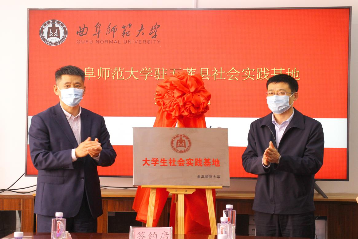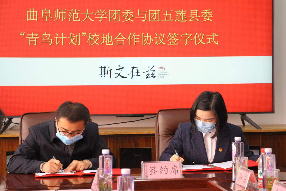 仪式上,校团委书记孔轶众与团五莲县委书记刘畅签署“青鸟计划”校地合作协议书,日照校区党委书记孔令军、五莲县委副书记王军为米兰网驻五莲大学生社会实践基地揭牌。