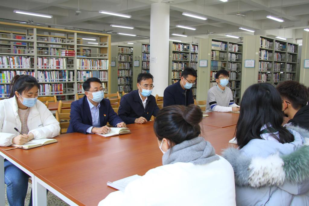 报告结束后,刘汉营与教师代表、学生党员代表在图书馆阅览室进行了座谈交流,就同学们提出的问题进行了解答。马克思主义学院团委书记张林表示,作为高校思政教育工作者,通过主题团课、专题班会、宣讲团、实践队、支教团、交流会、学术沙龙等多种形式带领同学们深入学习党的十九届六中全会精神,引领当代青年把青春奋斗融入党和人民事业,争做实现中华民族伟大复兴的先锋力量,争做有志气、有骨气、有底气的新时代中国青年。经济学院研究生代表王泽南表示,作为新时代大学生,应该学习新思想,争做新青年,肩负起新时代的责任和使命。传媒学院本科生代表王文迪表示,作为青年一代,作为曲师学子,要以史为鉴、开创未来,埋头苦干、勇毅前行,在中国共产党的领导下,奔赴远大前程,绽放复兴梦想。
