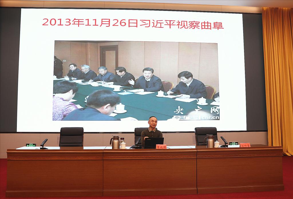 曲阜师大新闻中心讯    为全面贯彻落实习近平总书记关于“中华优秀传统文化是中华民族的精神命脉,是涵养社会主义核心价值观的重要源泉,也是我们在世界文化激荡中站稳脚跟的坚实根基”的重要讲话精神,进一步推进中华传统文化的普及与传承,在厅(委)机关营造传播向上向善正能量的良好氛围,曲阜师大副校长李兆祥教授受山东省教育厅(省教育工委)邀请,于11月10日做了“中华‘文化自信’的底气”专题报告,报告由山东省教育厅总督学刘欣堂主持,省教育厅部分同志及曲阜师大国家语言文字基地执行主任夏静教授、副主任李建校教授参加了报告会。