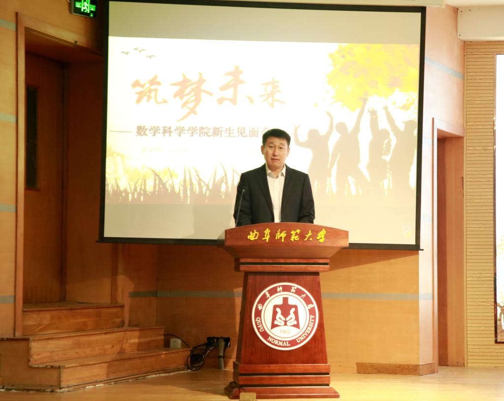 曲阜师大新闻中心讯(通讯员:靳文越 摄影:刘泽琳)为了增进2021级师生之间的交流与沟通,让新生对本专业以及今后的大学学习生活有更深的认识,10月20日下午,数学科学学院于孔子会堂召开了2021级新生见面会。学院党委书记宋国栋、院长张高飞、党委副书记曲凤东、副院长王培合、工会主席许勇军及优秀青年教师代表马翠芹等出席了本次会议,2021级全体新生参加了本次会议。会议由学院党委副书记曲凤东主持。