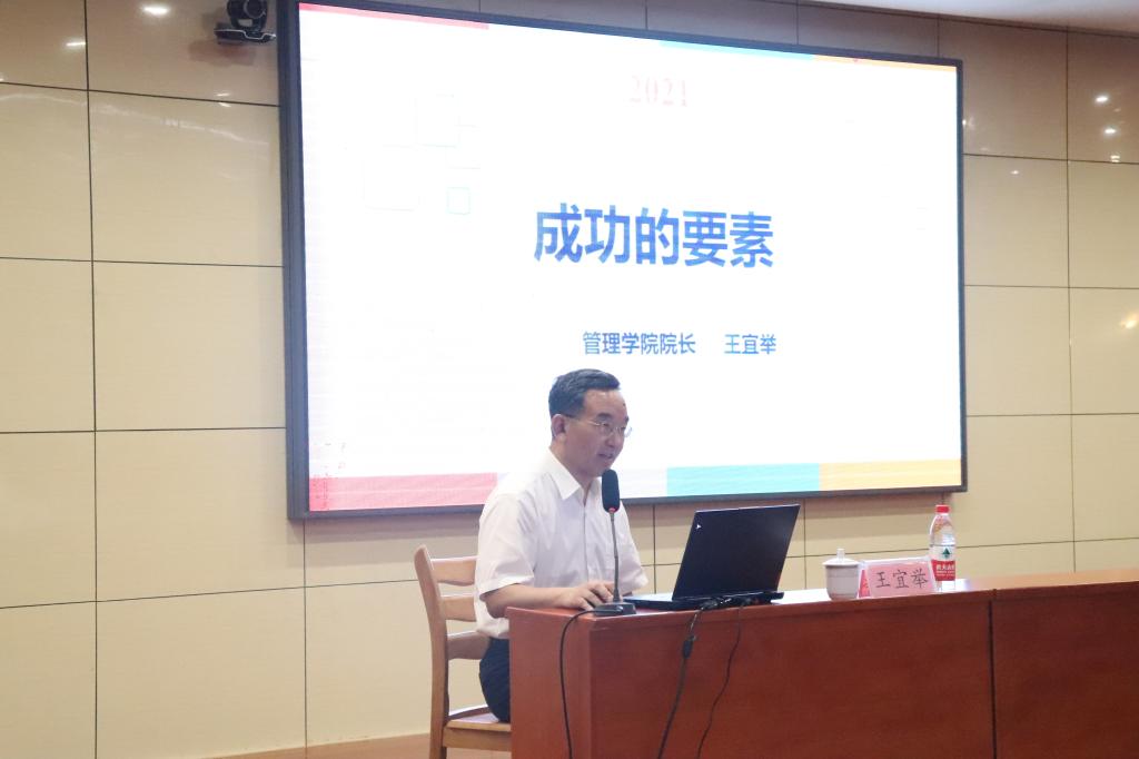 曲阜师大新闻中心讯(通讯员:董世超)  近日,曲阜师大管理学院举行新生第一堂思政课活动,院长王宜举教授为学院2021级全体新生作了题为“成功的要素”的报告。