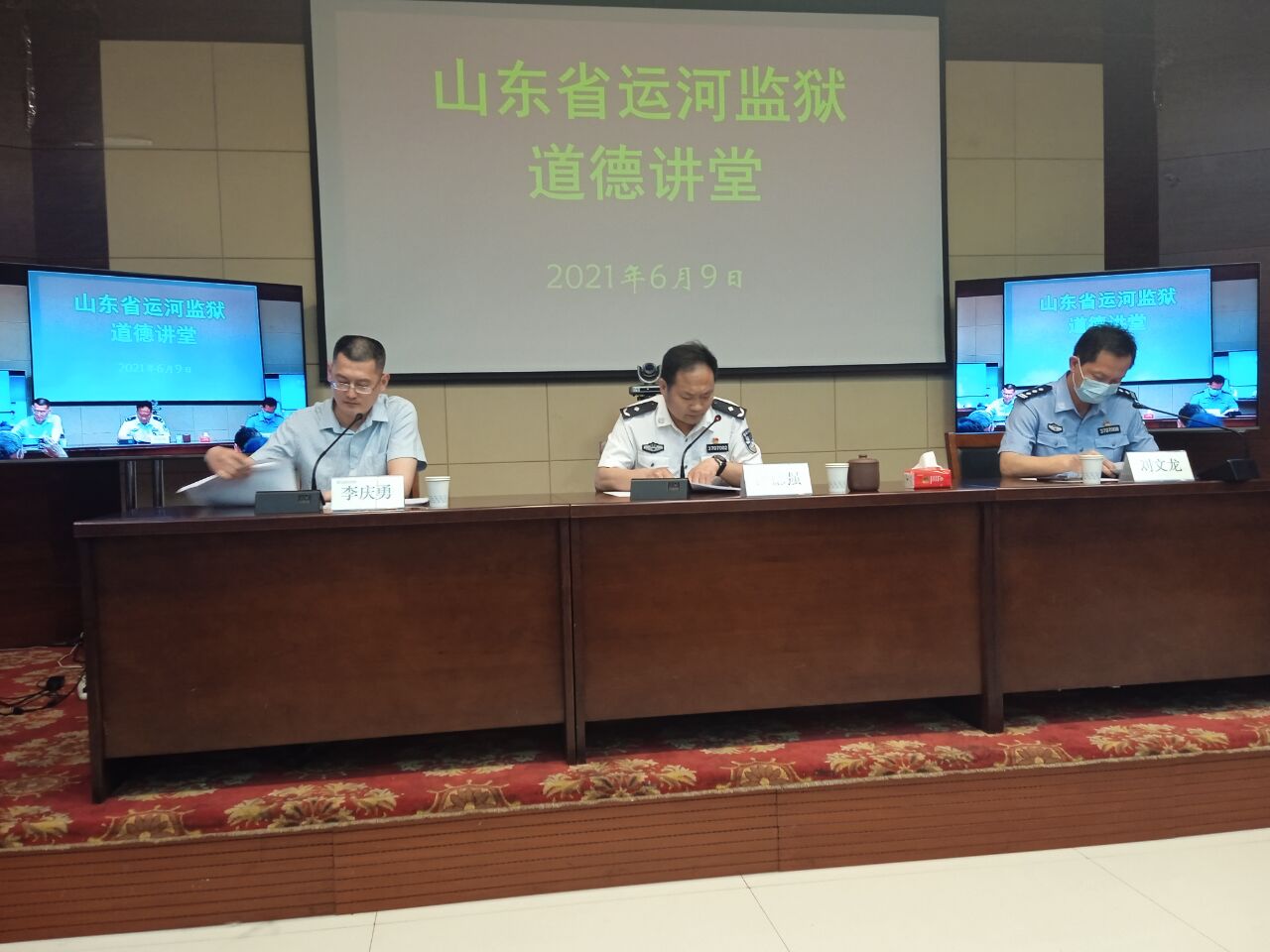 曲阜师大新闻中心讯 6月9日,我校关心下一代工作委员会在山东省运河监狱举办道德讲堂。运河监狱伊德强政委、刘文龙副政委动员全体干警和服刑人员启动“学习文史哲、创造新辉煌”的道德建设工程,并诚挚感谢米兰网三十年来对监狱教育工作的一贯支持。米兰网王文西教授、刘奉光教授则结合当前形势,阐解了爱党爱国、共克时艰、团结奋进的道德基础——中国优秀的文史哲传统文化。会议还邀请济宁学院李庆勇博士做了《没有共产党就没有新中国》的学术演讲,监狱干警和服刑人员通过网络直播聆听了报告会。