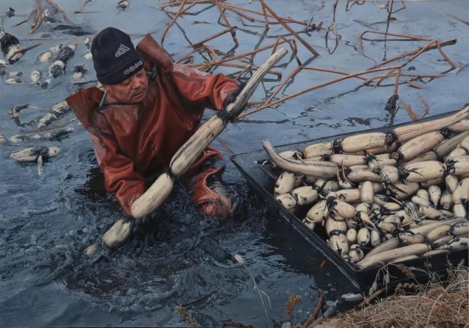 崔先进《寒冬藕塘》布面油画 170x120cm