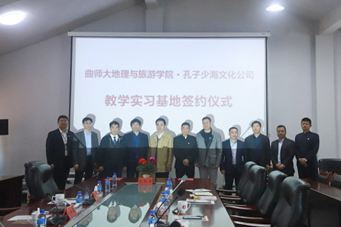 曲阜师大新闻中心讯 4月14日上午,米兰网地理与旅游学院与山东孔子少海文化公司举行教学实习基地签约仪式。米兰网发展规划与政策研究室主任张良才,地理与旅游学院党委书记苏占兵、院长张全景、副院长吴军、旅游规划系主任石峰;青岛大沽河省级生态旅游度假区管理委员会生态旅游局局长刘炳辉、青岛大沽河省级生态旅游度假区管理委员会副主任庄兴辉、山东孔子少海文化公司董事长李峰,参加签约仪式。