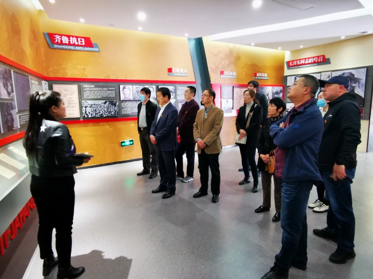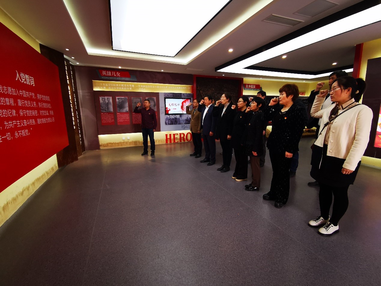 在甲子山战役纪念馆,讲解员详尽讲解了在党的领导下甲子山军民在抗日战争和反抗国民党统治的英勇斗争的壮烈事迹,取得了“杀“朱”过年”的甲子山战役重大胜利,展现了罗荣桓、朱瑞等一大批老一辈革命家奋不顾身,赴汤蹈火的英雄气概。一幅幅照片,一件件实物无声记录了革命先烈不屈不挠的斗争精神。党员同志深深为革命先辈的勇于牺牲前赴后继的精神所感动、也为甲子山人民“最后一粒粮做军粮,最后一尺布做军装,最后一个娃送战场”浓浓的军民鱼水情所感动,不少同志动容落泪。参观结束后,全体同志面对党旗,庄重宣誓,重温入党誓词。