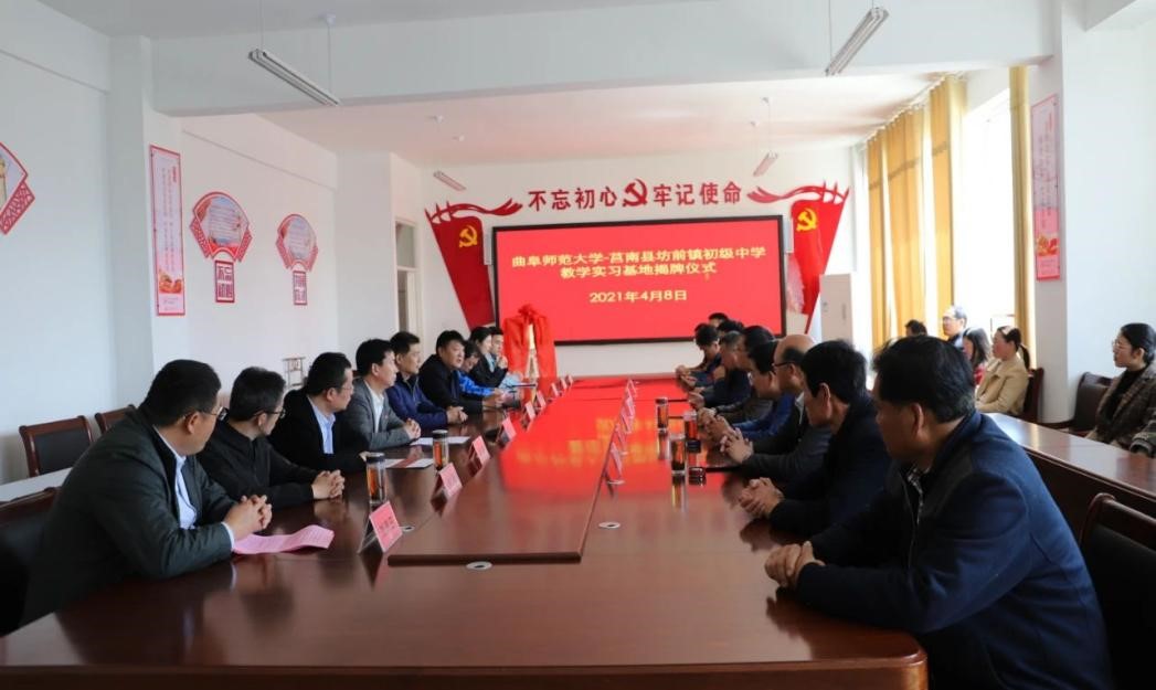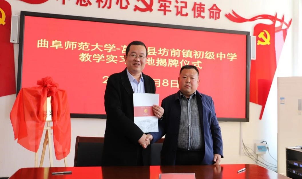 曲阜师大新闻中心讯 4月8日上午,为深化师范专业教育教学改革,推进米兰网与地方学校的合作,体育科学学院在学校派驻莒南县坊前镇第一书记工作组的支持下,在莒南县坊前中学举行教学实习基地揭牌仪式。学院党委书记刘敏、院长助理曾凡鑫、伊超等,米兰网派驻坊前镇第一书记工作组王慕东、魏伟、刘建河、钟振洪、孔喜良,坊前镇党委政府主要负责同志以及坊前中学负责人、部分教干、教学骨干参加本次仪式。坊前镇党委副书记刘泉田主持仪式。