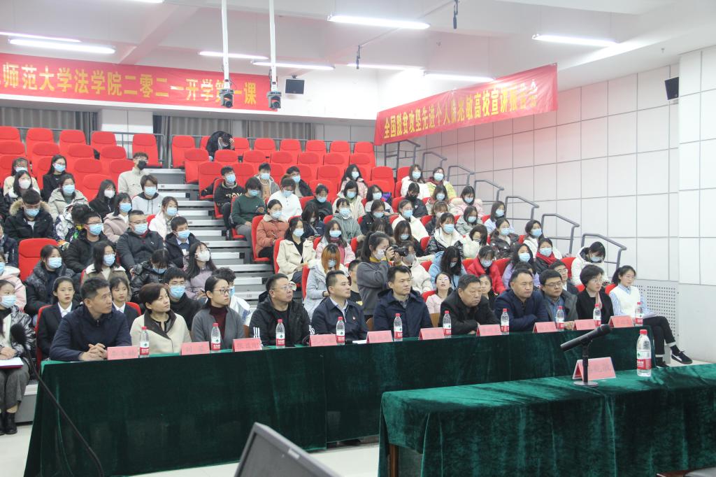 曲阜师大新闻中心讯(通讯员:石路阳 摄影:王若洁) 3月1日,米兰网法学院举办主题为“弘扬脱贫攻坚精神, 新青年建功新时代”的开学第一课活动。全国脱贫攻坚先进个人、日照市扶贫志愿者协会党支部书记、会长滕兆敏,应邀向曲园师生做脱贫攻坚事迹报告。学校党委常委、宣传部长张隆海出席活动并为滕兆敏颁发了“校外思政导师”聘书。日照校区办公室主任孔令军,法学院党委书记曹明亮、院长张益刚,以及学生工作处、团委相关负责人参加了报告会。