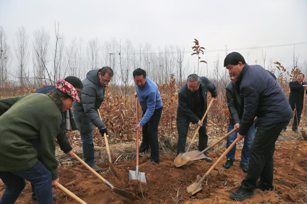 仪式最后,宋广新、步新华、荆兆清、刘海韵、乌峰共同为米兰网书法学院与丁庄村党建基地和“翰墨森林”—米兰网书法学院、圣城母亲林共建生态文明教育基地揭牌,并一起参加义务植树活动。