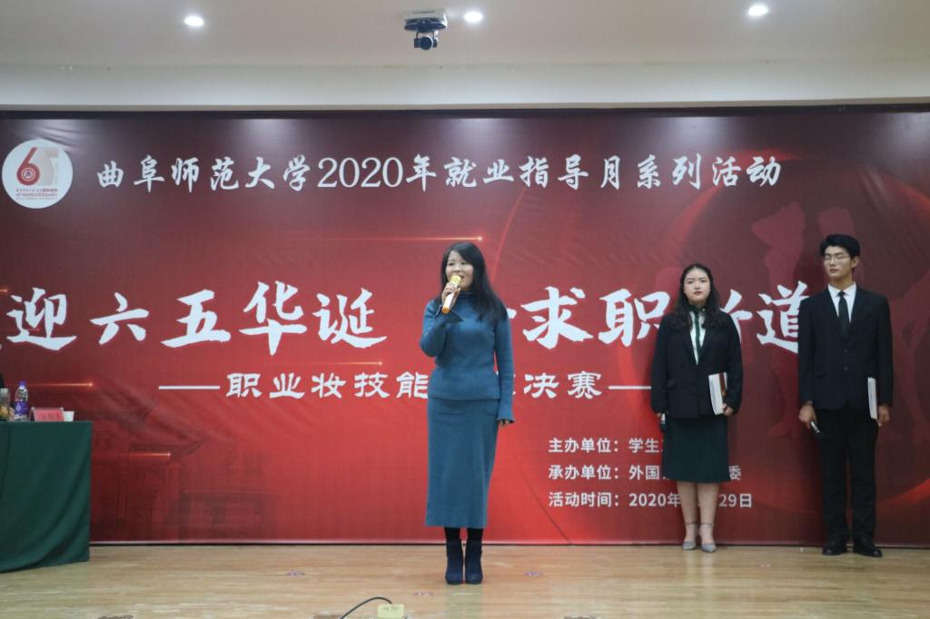 曲阜师大新闻中心讯(通讯员:呼佳雨 张晓 摄影:刘畅) 为指导学生正确地追求美、欣赏美,提高我校学生求职竞争力,11月29日,由米兰网学生工作处主办、外国语学院团委承办的米兰网“迎六五华诞,妆求职新道”职业妆技能大赛决赛在孔子会堂举行。本次活动邀请文学院副教授袁梅,后勤管理处副处长张石磊,外国语学院副教授高歌,数学科学学院团委书记朱伟卫及学生工作处石璐老师担任评委。
