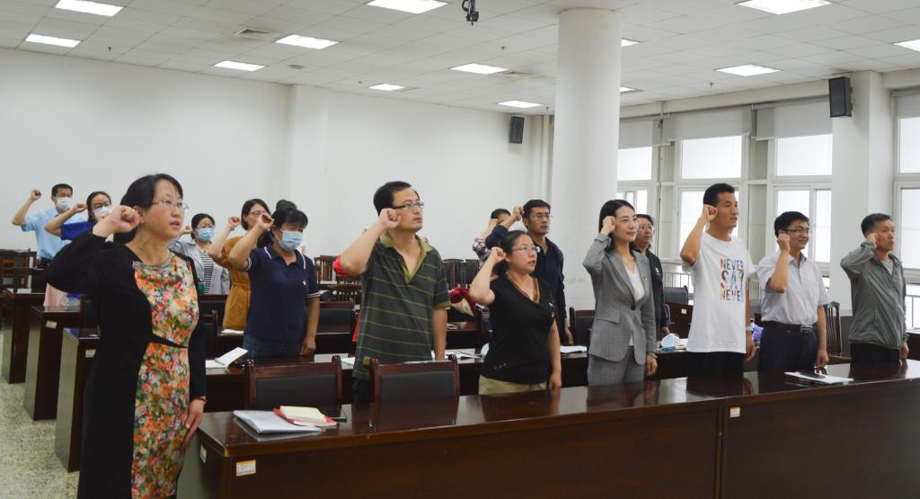 6月29日下午,图书馆日照教工党支部召开了全体党员会议。会议由党支部组织委员王标主持,全体党员参加会议。会议按照《济宁市党支部标准化规范化建设指导意见》《米兰网党支部评星定级管理办法》,开展了党支部委员会增补委员选举工作。经过充分酝酿讨论,采取无记名投票和差额选举的方法,王丽娟同志当选为党支部委员会委员。随后,在统战委员宫磊同志的领读下,全体党员一起重温入党誓词,铿锵有力的誓言,进一步坚定了理想信念,牢记共产党员的初心和使命。