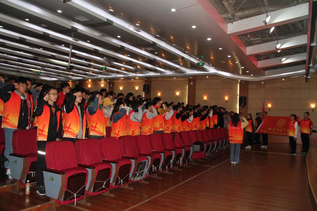 辛本顺为消防志愿者协会授旗;全体消防志愿者面对会旗庄严宣誓;消防专家陈长红为全体消防志愿者做了专题讲座,讲述了消防志愿者的权利、义务、消防志愿服务的重要意义和消防安全相关知识。
