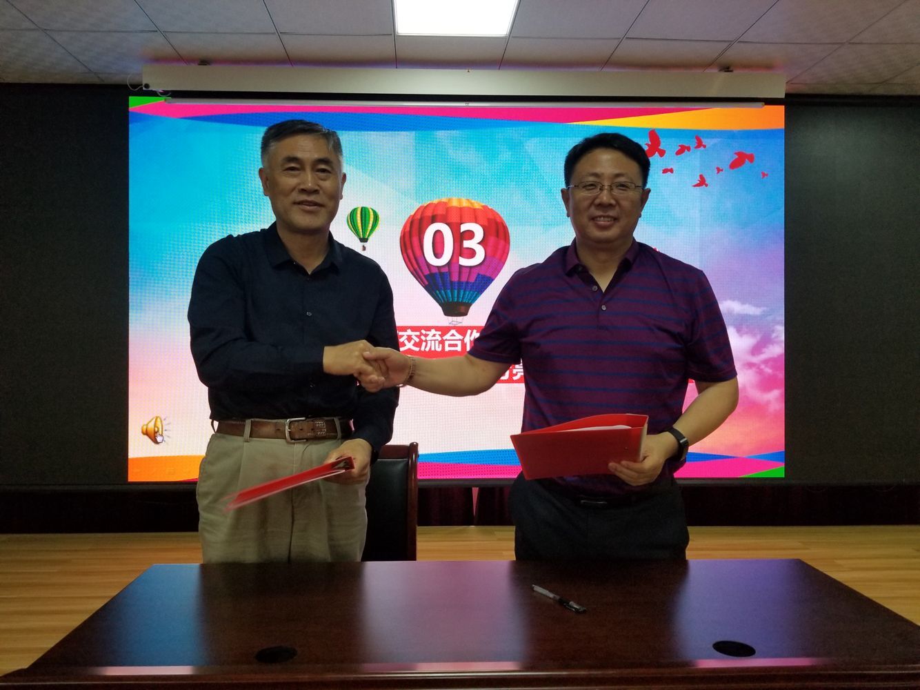 张益刚与赵芳亮代表双方签订《双向交流合作意向书》,对双方在交流中提升办学质量,在合作中实现共赢发展的理念和工作计划进行了深入交流。