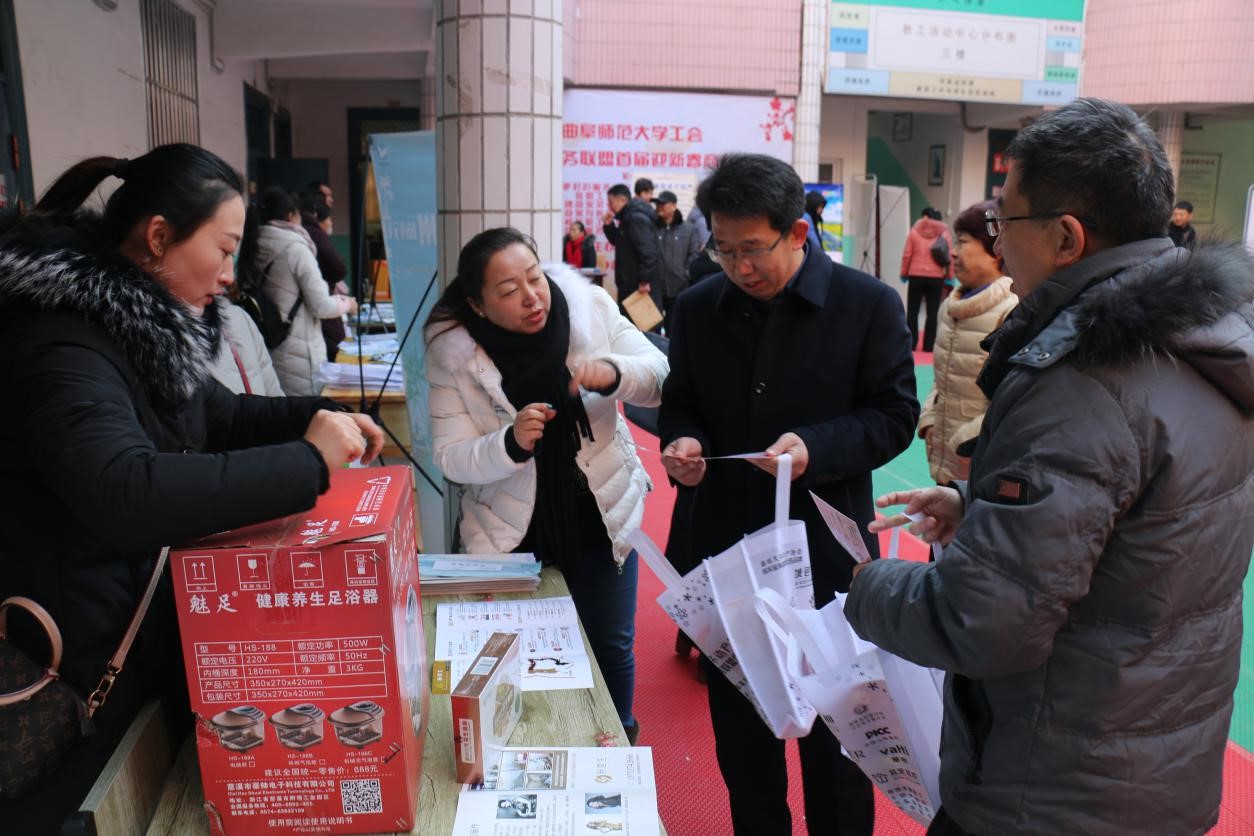 为了更好地多渠道服务全校教职工,本次教职工服务联盟商品展示会联系了银行、不动产、人保寿险、电商、服装、健康养生、旅游等十余类品牌商家,为我校教职工提供现场办公、上门服务。特别是驻泗水圣水峪镇乡村振兴服务队带来泗水县圣水峪镇黄心地瓜、无公害花生米等农产品,价廉物美,成交量达200余箱,受到大家一直好评。