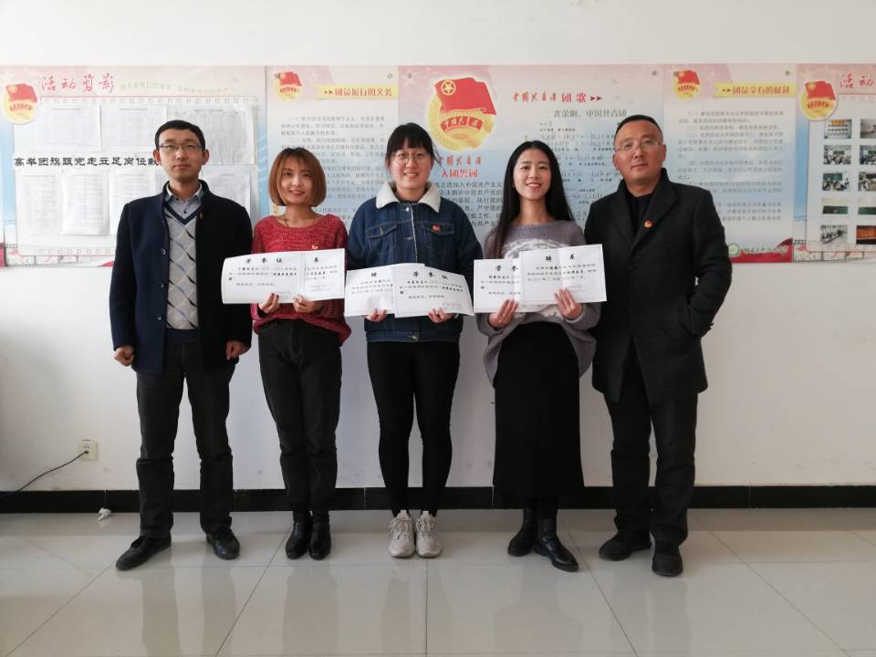 仪式中,薛宝强、张永辉为我校三位支教团成员颁发聘书及荣誉证书。田蕾、干露、谢媛分别被聘任为杨陵高新初级中学团委宣传委员、文艺委员、纪律委员。在接下来的支教生活中,她们将协助团委老师完成团员团籍管理、青年驿站宣传、学校广播站广播、日常活动考勤等团委日常工作。此外,结合我校三位支教成员的日常表现,她们还被授予杨陵高新初级中学2018—2019年度“优秀共青团干部”荣誉称号。三位研支团成员在服务单位分别担任杨陵高新初级中学团委宣传干事、八年级团总支书记、九年级团总支书记等职务,她们积极配合团委开展各项工作,按时完成团委老师分配的各项任务,用踏实的工作态度和严谨的工作作风做好工作中的点点滴滴,得到了支教学校领导和老师们的一致好评。