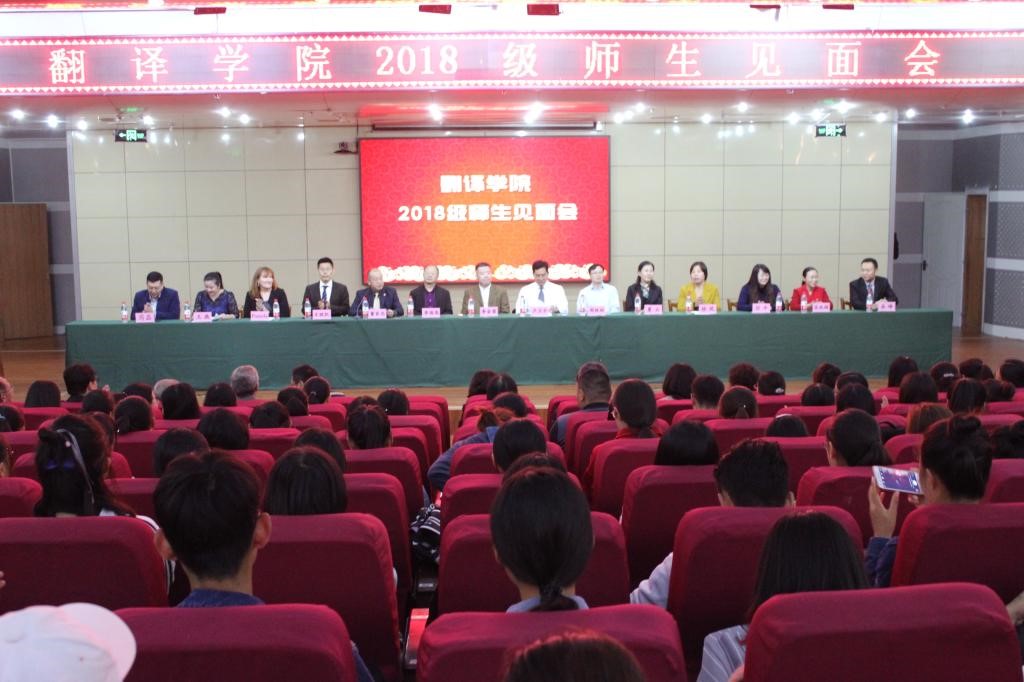 近日,翻译学院2018级师生见面会在图书馆报告厅举行,院党委书记李金雷、院长卢卫中、博士生导师李德高、语言与脑科学研究中心主任周统权、党委副书记董家忠、副院长夏云、副院长宋晓凯、工会主席徐凤、团委书记岳峰等学院领导和教师代表出席了见面会。本次见面会由董家忠主持,翻译学院全体师生参加了此次见面会。