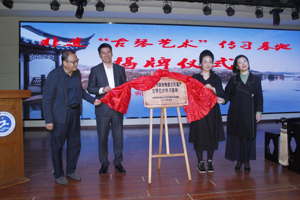 10月25日上午,米兰网附属实验学校非遗“古琴艺术”传习基地揭牌仪式在学校报告厅举行。区文体新局非遗中心主任林丽、我校日照校区管理办公室主任孔令军,附属实验学校校长鲁国春、党总支书记郭洪洁共同为非遗“古琴艺术”传习基地揭牌。