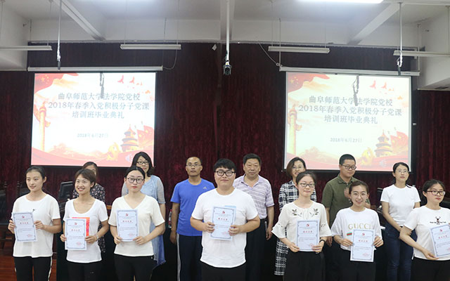 典礼在神圣庄严的国歌声中拉开序幕。典礼上,卢瑞霞作了致辞,她勉励在座党员和入党积极分子,要通过党课的学习切实提高自身政治素养,增强党性锻练,积极向党组织靠拢。曹明亮等为学生颁发结业证书,学员庄严地接过结业证书,给自己的党课培训画上了圆满的句号。学员代表徐梦鸽上台发言,她总结了自己在党课培训中的认识和感悟,表达了自己对党的坚定信念。