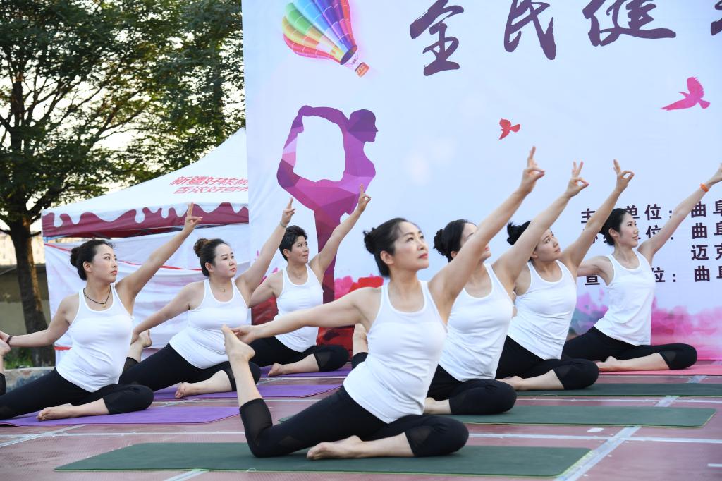 伴随着悠扬的《神话》乐曲,活动以壮观的百人瑜伽拜日式作为开场舞震撼全场,瑜伽协会教师表演的舞韵瑜伽《神话》《Beautiful Yoga》姿态优美,动作难度高,引得现场一阵阵掌声。她们还表演了单人、双人、四人和六人瑜伽节目,给观众呈现了一场精彩的表演。