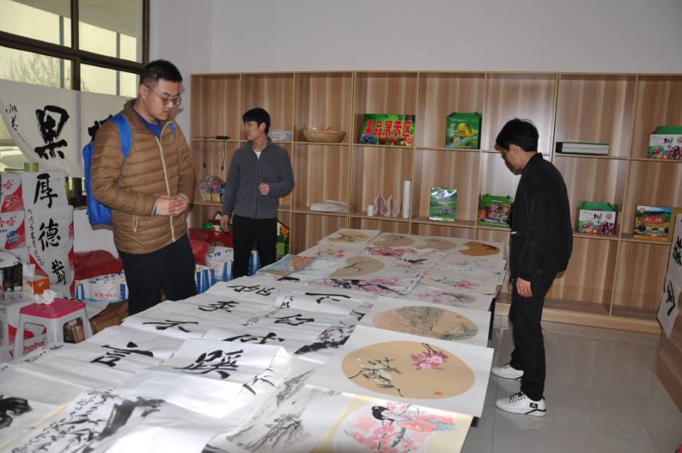 美术学院20名学生在开幕现场进行了绘画创作,书法、国画和水彩不同专业的学生充分施展自己的艺术才能,将壮丽的繁花盛景汇入点点水墨丹青,将满园的花团锦簇绽放在张张莹白的纸上。同学们边创作边赠送,让前来的游客在领略到桃园美景的同时,又能将这一片芬芳收藏在自己身边。
