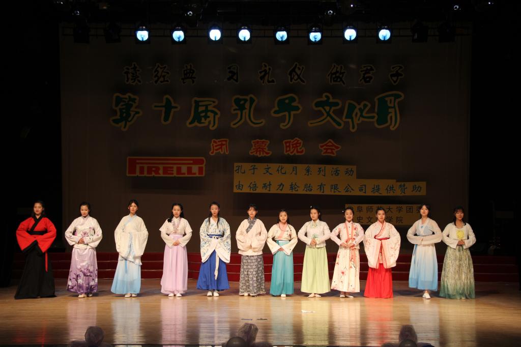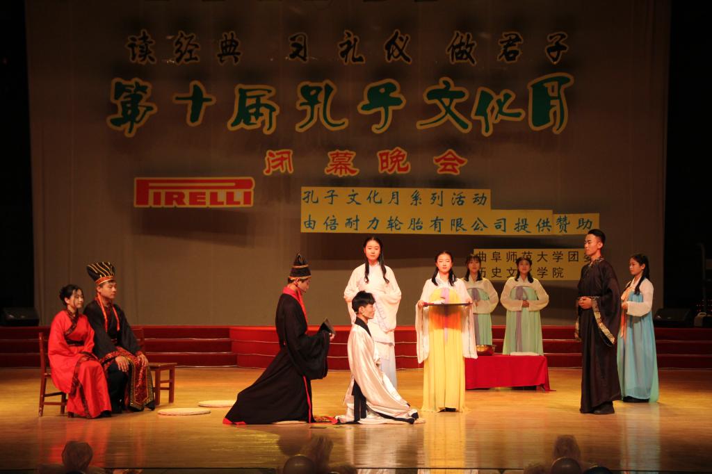 第十届“孔子文化月”系列活动以 “读经典、习礼仪、做君子”为主题,历时一个多月,举办了人文知识竞赛、最美汉服代言人大赛、大学生成人礼、国学沙龙、历史话剧剧本大赛等活动,获得学校师生一致好评,在校内外产生了广泛而深刻的影响。