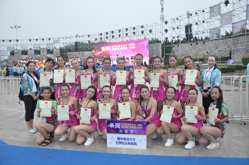 6月24日至26日,全国啦啦操大赛(日照站)暨中国啦啦之星争霸赛(日照站)在日照市万平口滨海风景区举办。我校啦啦队在领队杨弢主任的带领下,于26日的第三场比赛中斩获大学乙组集体爵士自选动作冠军,双人爵士自选动作季军,并获得代表中国参加2016-2017年国际啦啦操系列赛事的资格。
