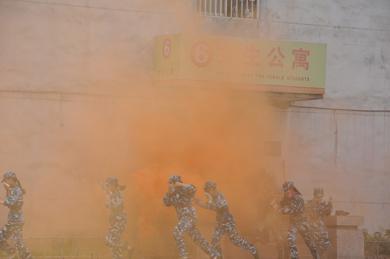 曲阜市公安消防大队副大队长邵鲁科细致入微地向同学们讲解了楼房火灾疏散要领,指导同学们进行了疏散演练,并对演练进行了点评,详细介绍了灭火器使用方法。2015级新生进行了灭火实战演练,大家分为三组兴致高昂地完成了演练。