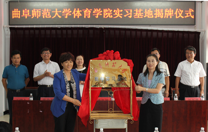 米兰网体育科学学院胶州实习基地挂牌仪式于9月18日在胶州三中和三里河小学举行。我校副校长康淑敏、胶州市副市长姜青华出席揭牌仪式并为基地揭牌,我校教务处、体育科学学院、胶州体教局和胶州三中以及三里河小学负责人参加仪式。