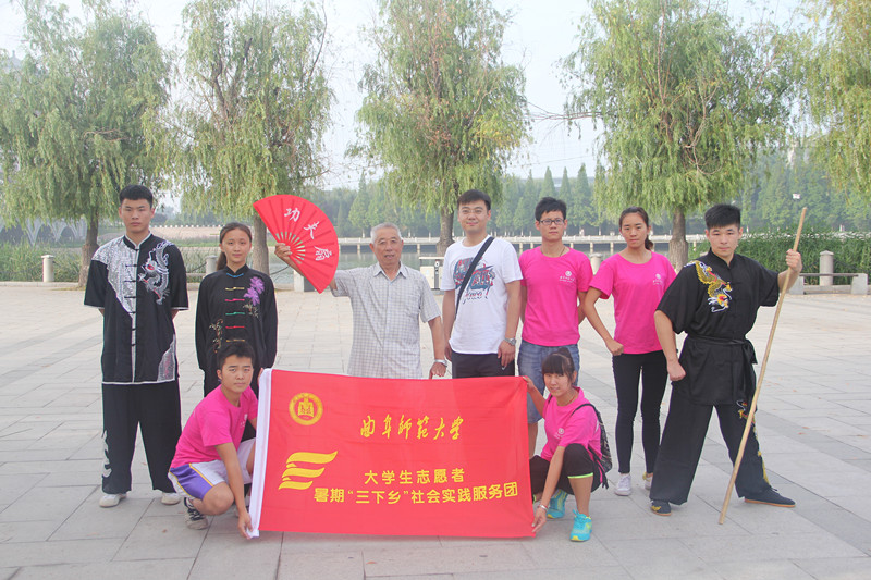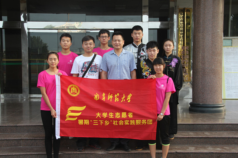 为更好的响应大学生暑假社会调研三下乡活动,体育科学学院开展了以“武动青春,共兴中华瑰宝”为主题的社会调研活动,先后设立了曲阜沂河小区和民族公园两个活动站点。