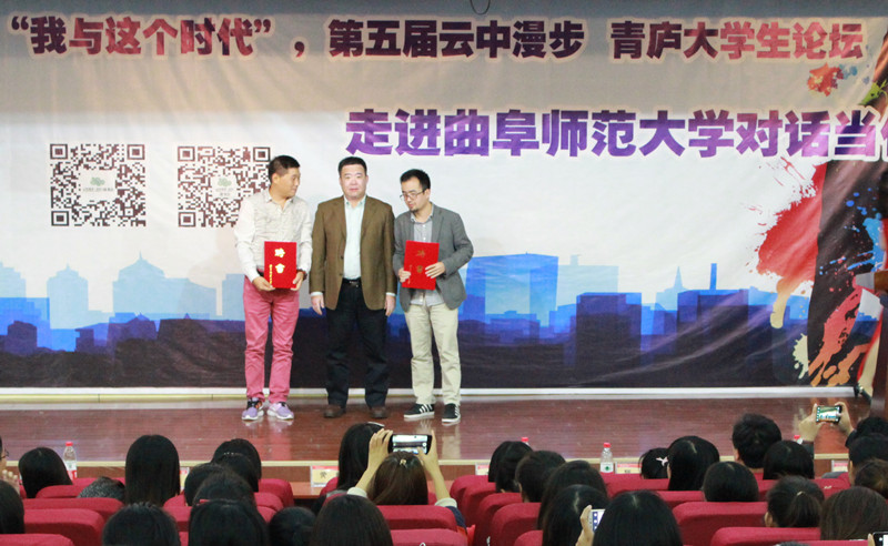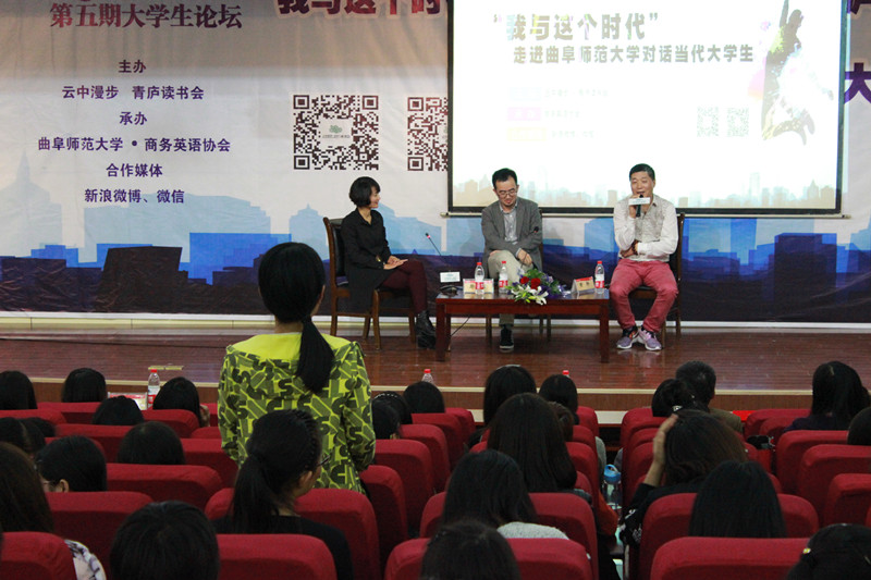 10月22日晚,由翻译学院承办的“我与这个时代”云中漫步·青庐读书会第五届大学生论坛暨翻译学院商务英语活动月启动仪式举行。北京黄记煌餐饮管理有限责任公司董事长黄耕,正和岛内容总监、财新网、新浪网专栏作家陈为,云中漫步·青庐读书会大学生论坛发起人马翠,一起走进校园,对话曲园学子,分享他们的人生经历与生活感悟。日照校区管理办公室、学团工作办公室、翻译学院等相关领导老师和500余名学生参加本次活动,新浪微博、微信等媒体对活动进行了同步报道。