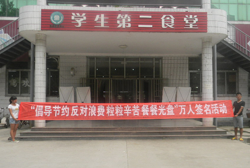 “粒粒辛苦,餐餐光盘”——6月22日, 由我校团委主办,校学生会承办的“光盘行动”顺利开展。