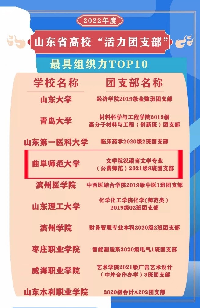山东省高校“活力团支部”TOP10、“活力社团”TOP5