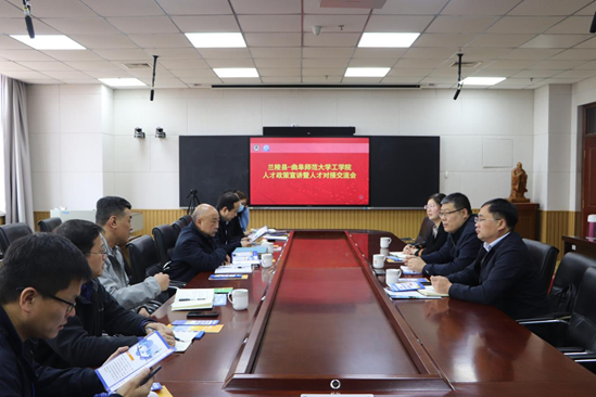 曲阜师大工学院讯   3月17日上午,兰陵县县委组织部人才科科长刘琳带队到工学院开展人才对接交流会,并进行人才政策宣讲。学生工作处副处长曲涛、工学院党委副书记肖龙航、自动化研究所副所长黄金明等学院相关老师参加会议。