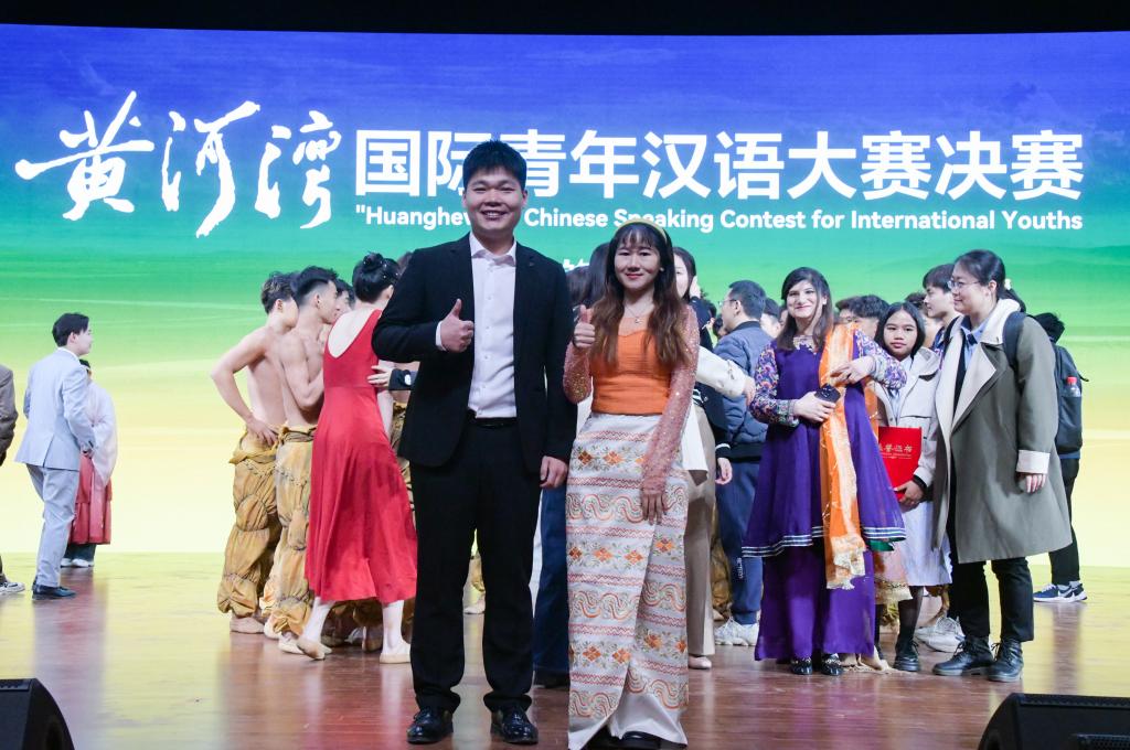 曲阜师大国际教育学院讯 3月24日,由山东省委外办(省对外友协)、山东省教育厅、山东电视台主办的首届“黄河湾”国际青年汉语大赛在米兰网落下帷幕。曲阜师大缅甸籍学生尹润敏(AYE NWE NWE)获得境内组一等奖,司甫获得“优秀指导教师”奖。