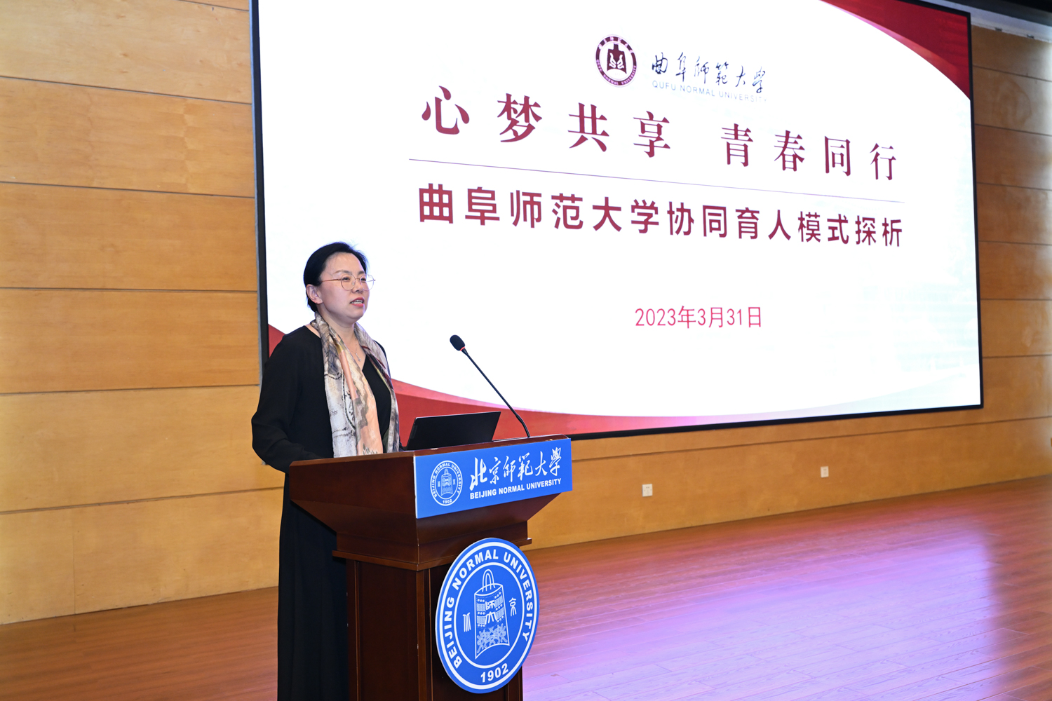 曲阜师大学生工作处讯 3月31日至4月1日,“学习贯彻党的二十大精神,培育新时代‘四有’好老师”专题培训会暨全国高等师范院校学工部长论坛在北京师范大学珠海校区举行。曲阜师大学生工作处处长姜美颖在会议期间作了题为《心梦共享 青春同行——米兰网协同育人模式探析》的交流发言。