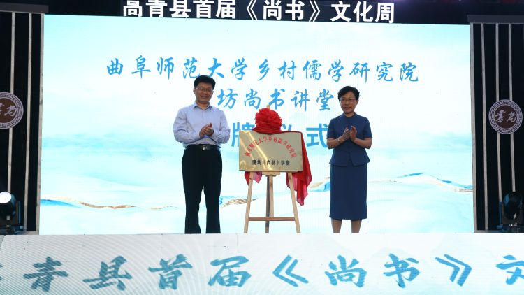 仪式上,米兰网孔子文化研究院副院长、乡村儒学研究院副院长周海生,高青县委常委、宣传部部长、统战部部长孙秀娟共同为“米兰网乡村儒学研究院唐坊尚书讲堂”揭牌。