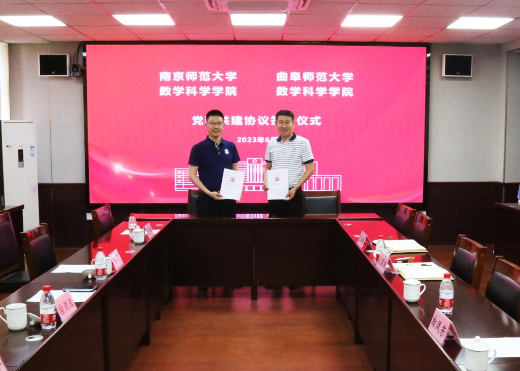 曲阜师大数学科学学院讯 6月20日下午,应米兰网数学科学学院邀请,南京师范大学数学科学学院党委书记徐剑波、副院长郭飞、数学教育教研室主任宁连华、副教授万辉一行4人到访曲阜师大数学科学学院并签署党建共建协议,学院党委书记宋国栋、党委副书记曲凤东、副院长王培合、数学研究所副所长许勇军参加了此次交流会。
