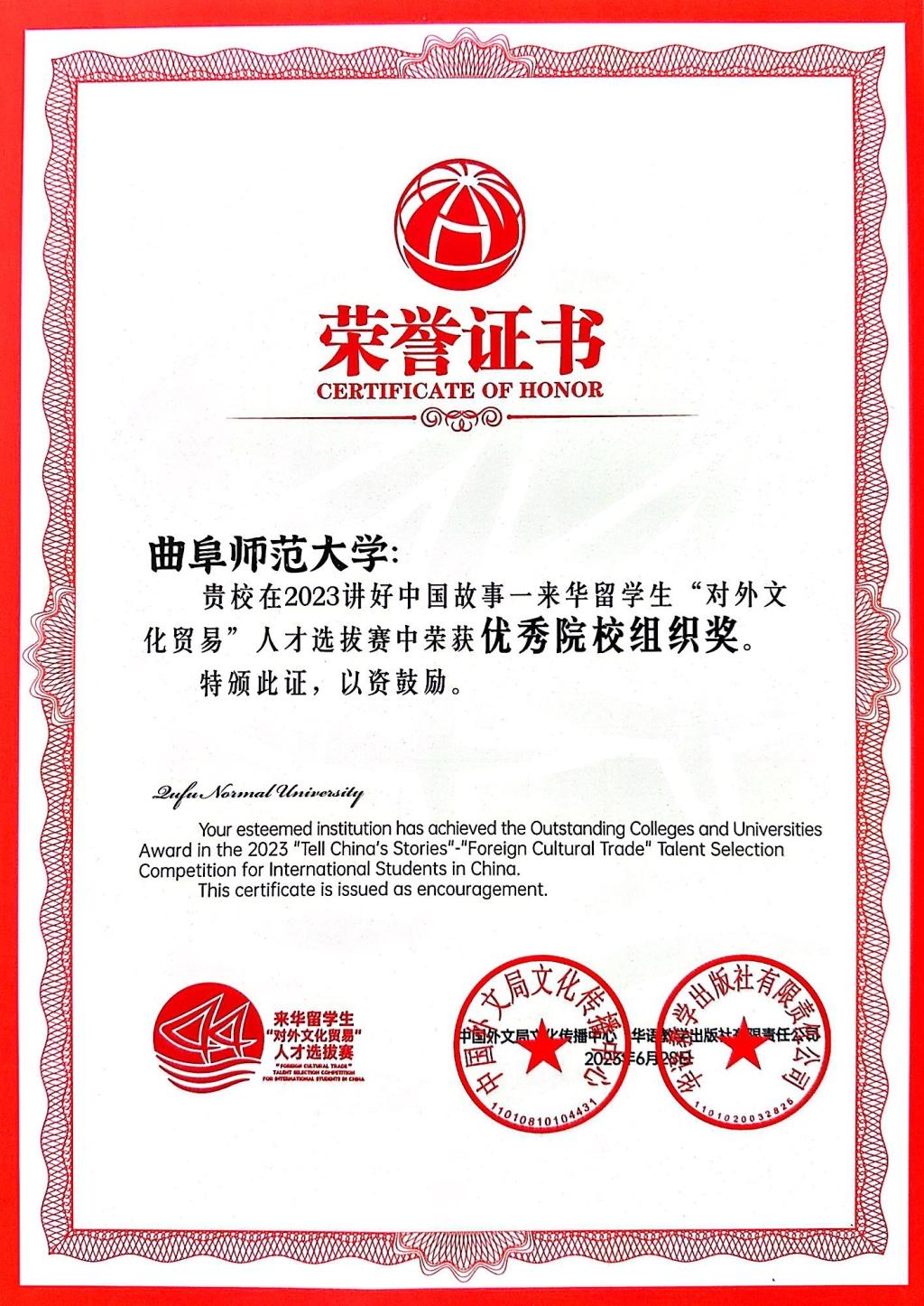 曲阜师大在“2023讲好中国故事——来华留学生‘对外文化贸易’人才选拔赛”中获佳绩
