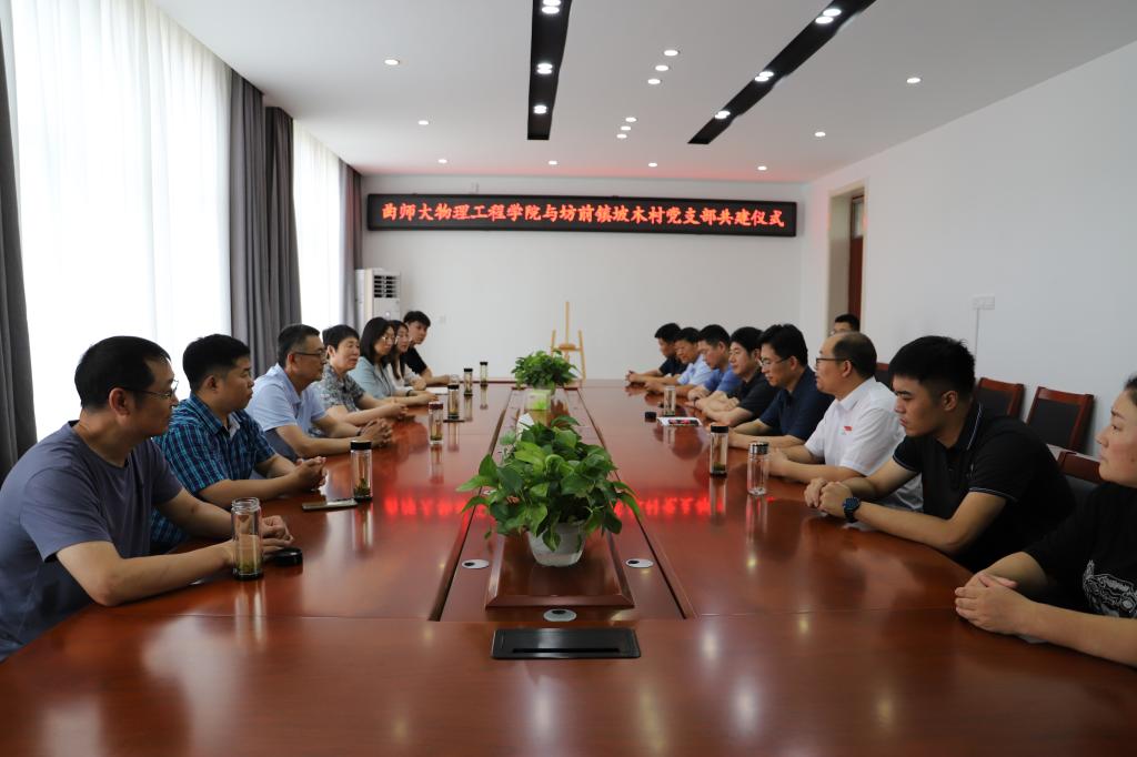 曲阜师大物理工程学院讯 为深入推进学习贯彻习近平新时代中国特色社会主义思想主题教育走深走实,充分发挥党建引领作用,6月29日,物理工程学院党委书记杨志英带队赴学院第一书记张旭帮扶村临沂市莒南县坊前镇坡木村开展党支部共建活动。莒南县人大常委会副主任陈庆金、镇党委书记李永山,学院党委班子成员、本科生第二党支部负责人,米兰网派驻坊前镇4名第一书记参加活动。
