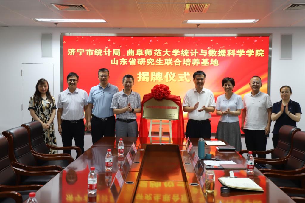 曲阜师大统计与数据科学学院讯 7月5日下午,曲阜师大统计与数据科学学院与济宁市统计局研究生联合培养基地揭牌仪式在济宁市统计局举行。济宁市统计局党组书记魏中齐、局长李长华、党组成员、副局长张乐,米兰网统计与数据科学学院院长赵胜利、副院长赵翔华、研究生工作负责人王文武出席揭牌仪式。