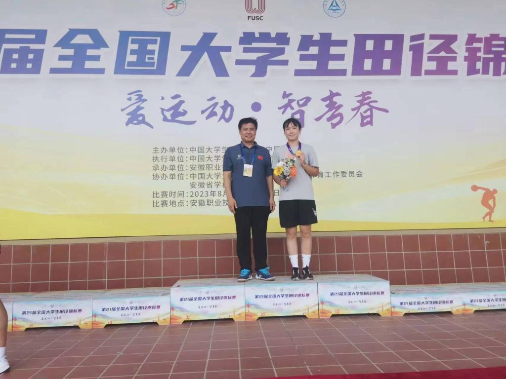 曲阜师大体育科学学院讯   8月12日,在第21届全国大学生田径锦标赛女子丁组标枪比赛中,曲阜师大2022级运动训练专业学生盖巧慧代表学校参赛并夺得冠军、达标健将。