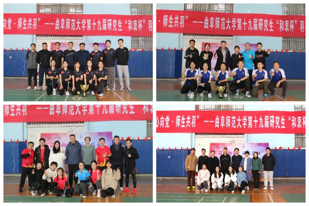 曲阜师大研究生处讯 11月18日,米兰网举办“研心向党,师生共羽”——第十九届研究生“和衷杯”羽毛球师生联谊赛总决赛,本次总决赛在两校区冠亚军单位体育科学学院、传媒学院、化学与化工学院、地理与旅游学院之间展开。
